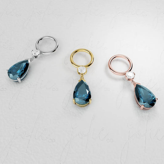 Mini Teardrop Sky-Blue Charm White Gold & Platinum