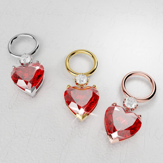 • Mini Heart Ruby Charm Yellow & Rose Gold