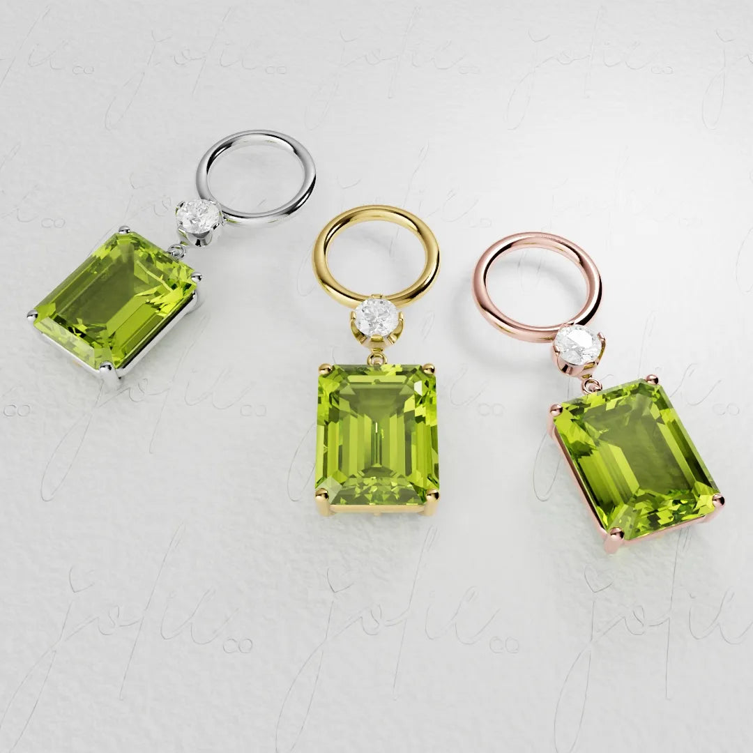 Mini Emerald Peridot Charm White Gold & Platinum
