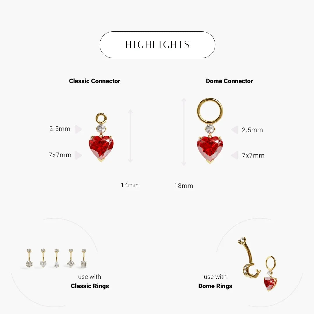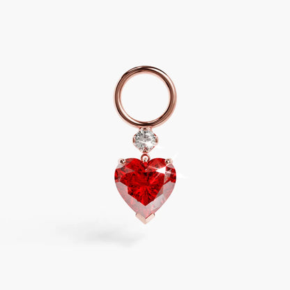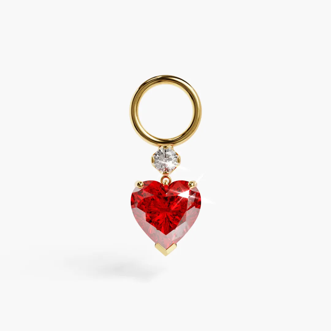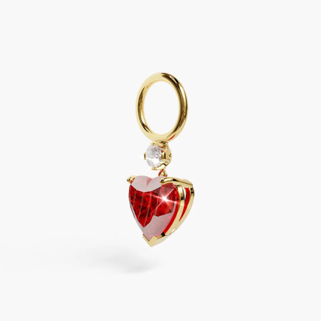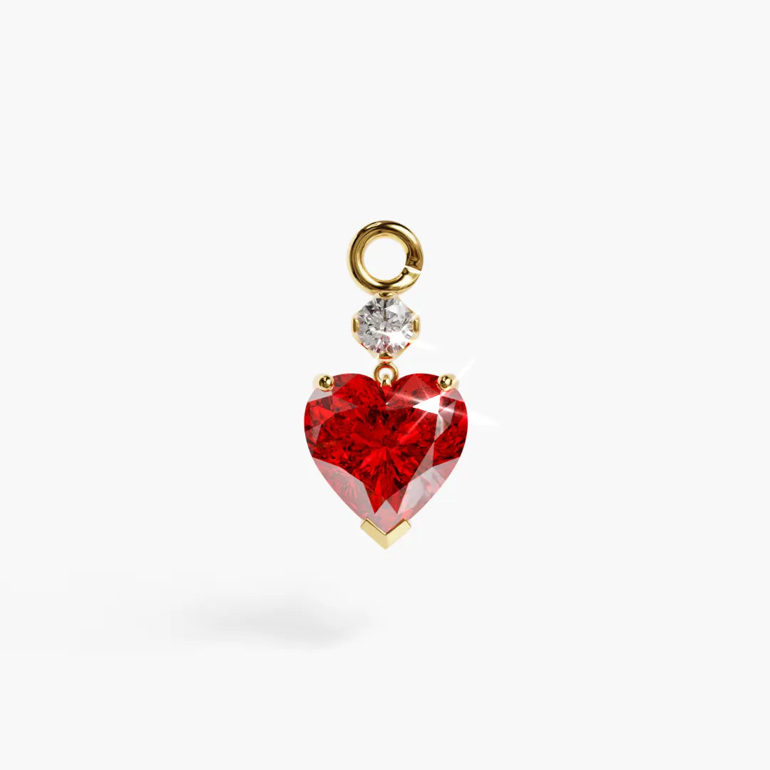 Mini Heart Ruby Charm Yellow & Rose Gold