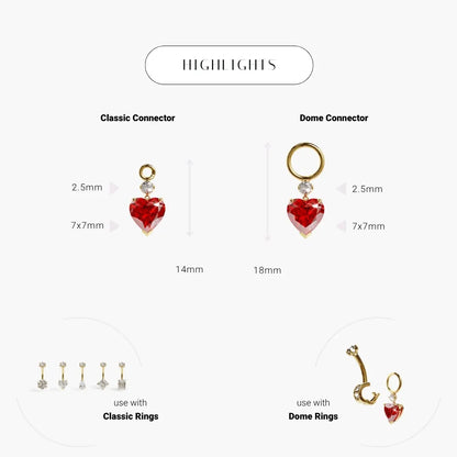 A lab-grown ruby heart steals the spotlight, stacked beneath a crisp white moissanite in our signature Orchid setting. Bold, punchy, and unapologetically red. Clip it on when the outfit needs heat.