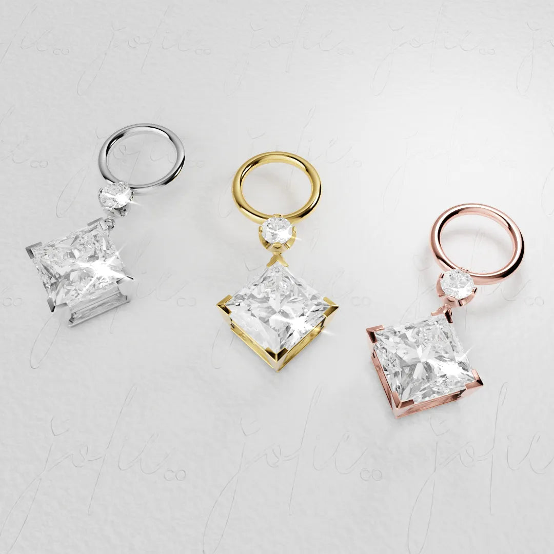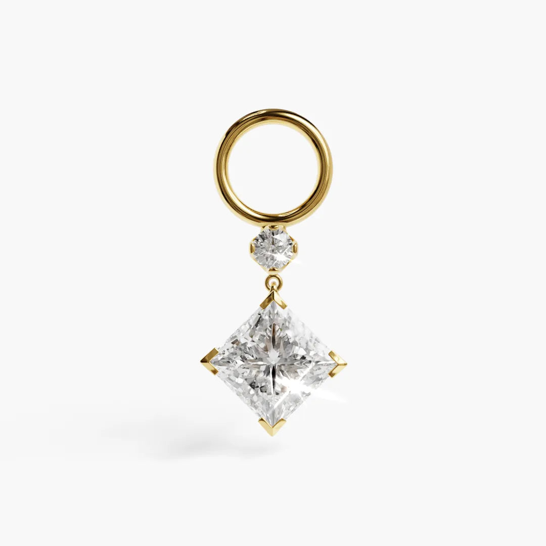 The moissanite stone has more sparkle than any other gemstone, meaning it emits more fire and brilliance. Compared to cubic zirconia that is known for its excessive light dispersion, moissanite has the same sophisticated look of a diamond. But that is not all, it is also half the weight making your charm comfortable to wear.
