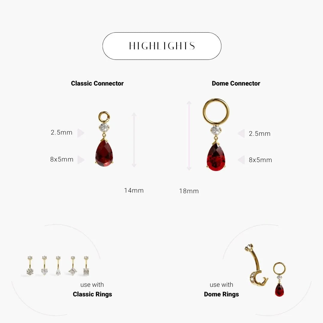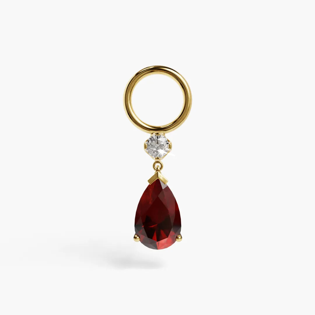Mini Teardrop Garnet Charm Yellow & Rose Gold
