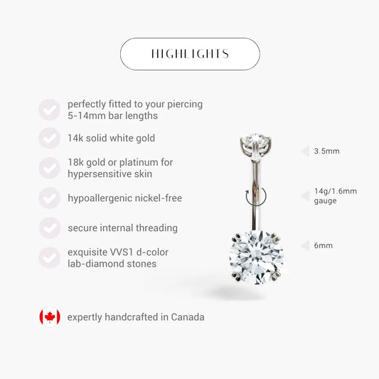 Swan Baby Dome Moissanite Belly Ring White Gold