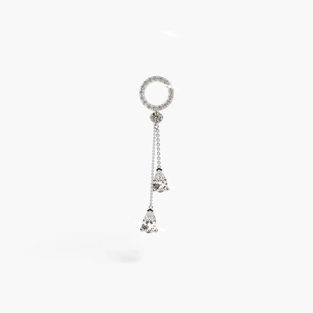 The Demi Drop ‘Tear’ brings the drama in a tighter silhouette—twin pear-cut moissanites paired with a pavé halo and fine gold chains. It’s delicate, dazzling, and designed to stand out.