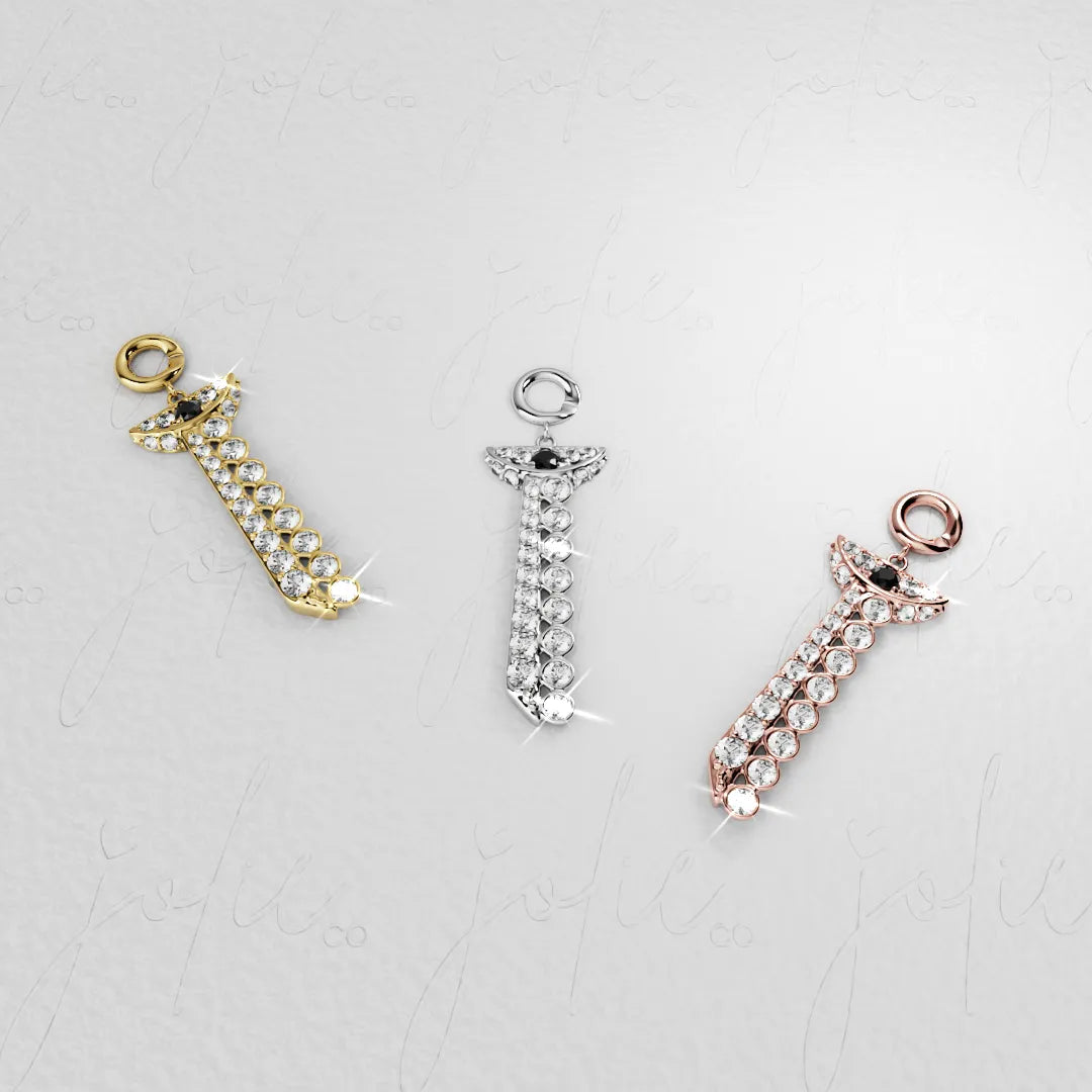 The moissanite stone has more sparkle than any other gemstone, meaning it emits more fire and brilliance. Compared to cubic zirconia that is known for its excessive light dispersion, moissanite has the same sophisticated look of a diamond. But that is not all, it is also half the weight making your charm comfortable to wear.