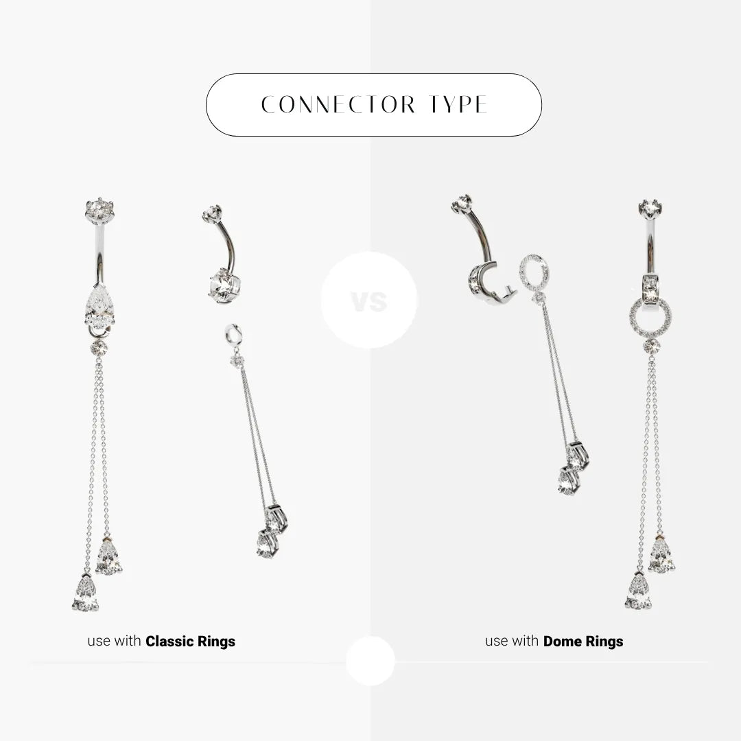 Our white gold navel rings are rhodium-plated, adding a luxurious, reflective finish that enhances their aesthetic appeal. This plating also provides an extra layer of protection for those with metal sensitivities.