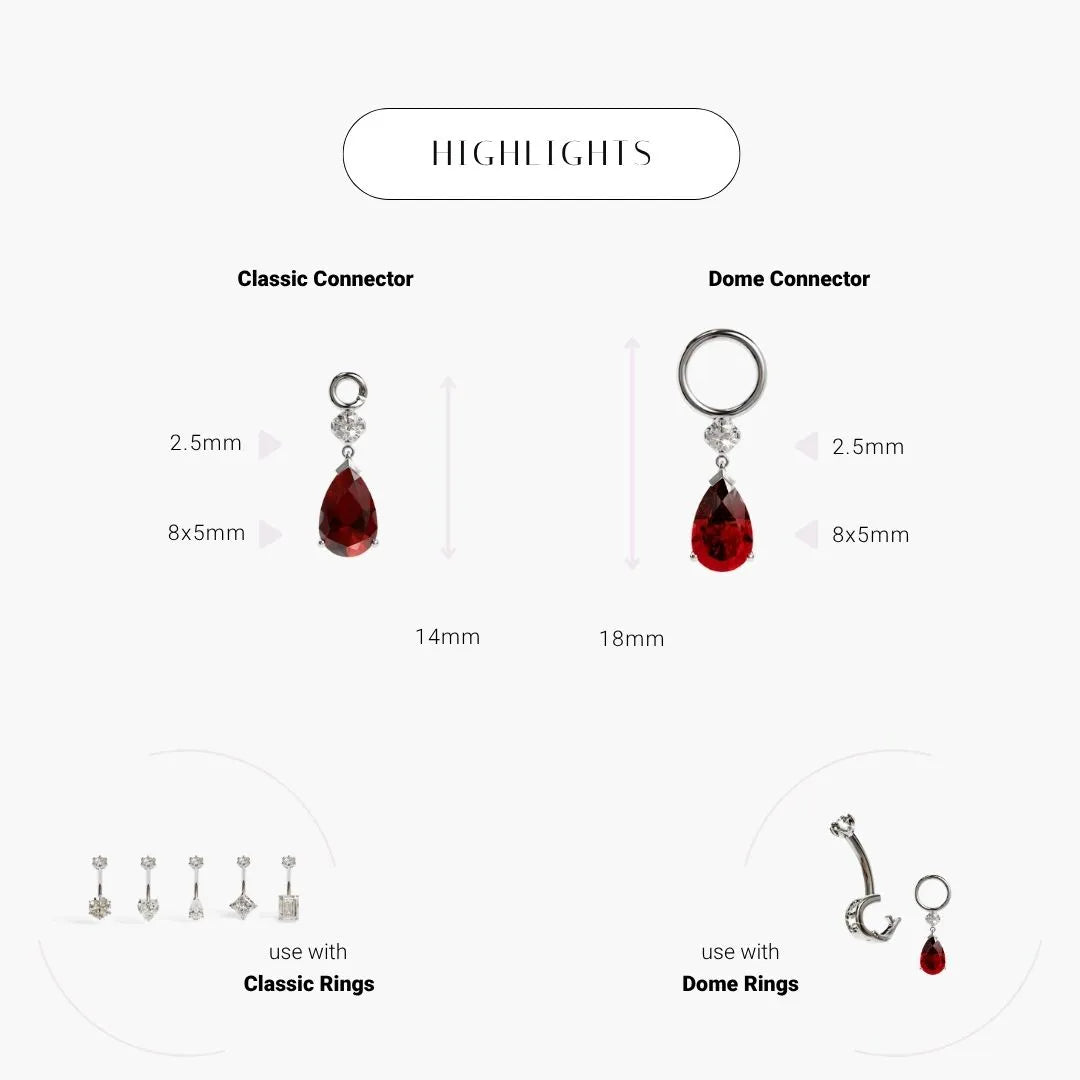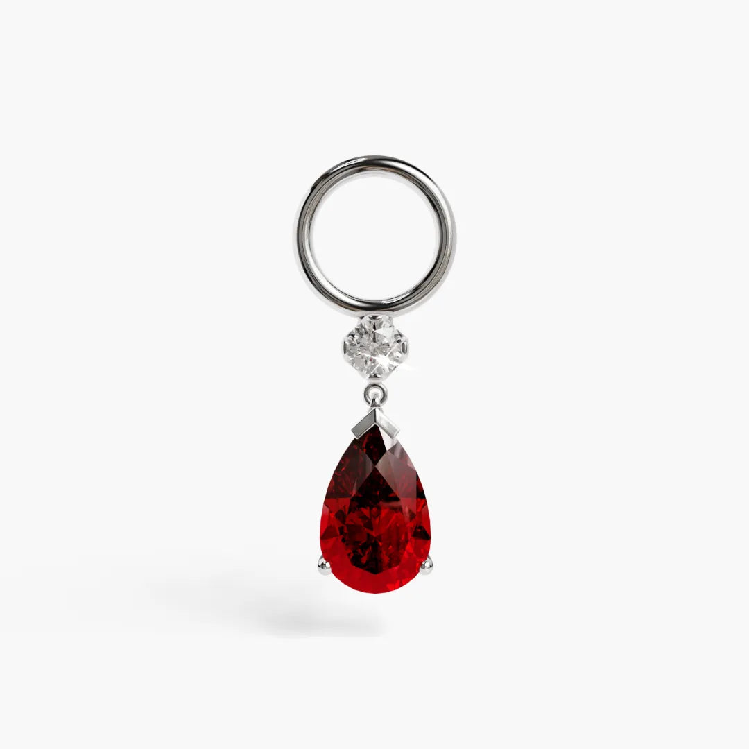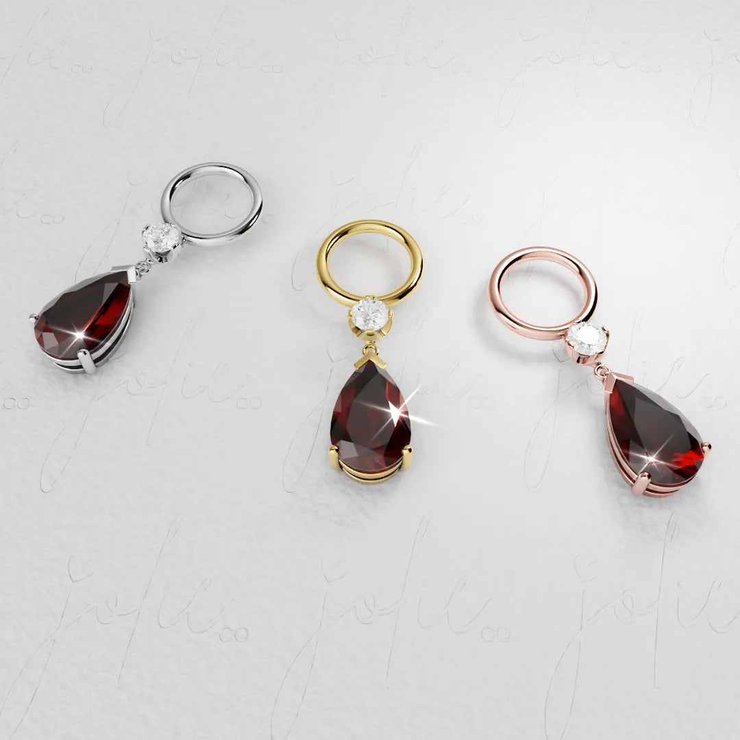 Mini Teardrop Garnet Charm White Gold & Platinum