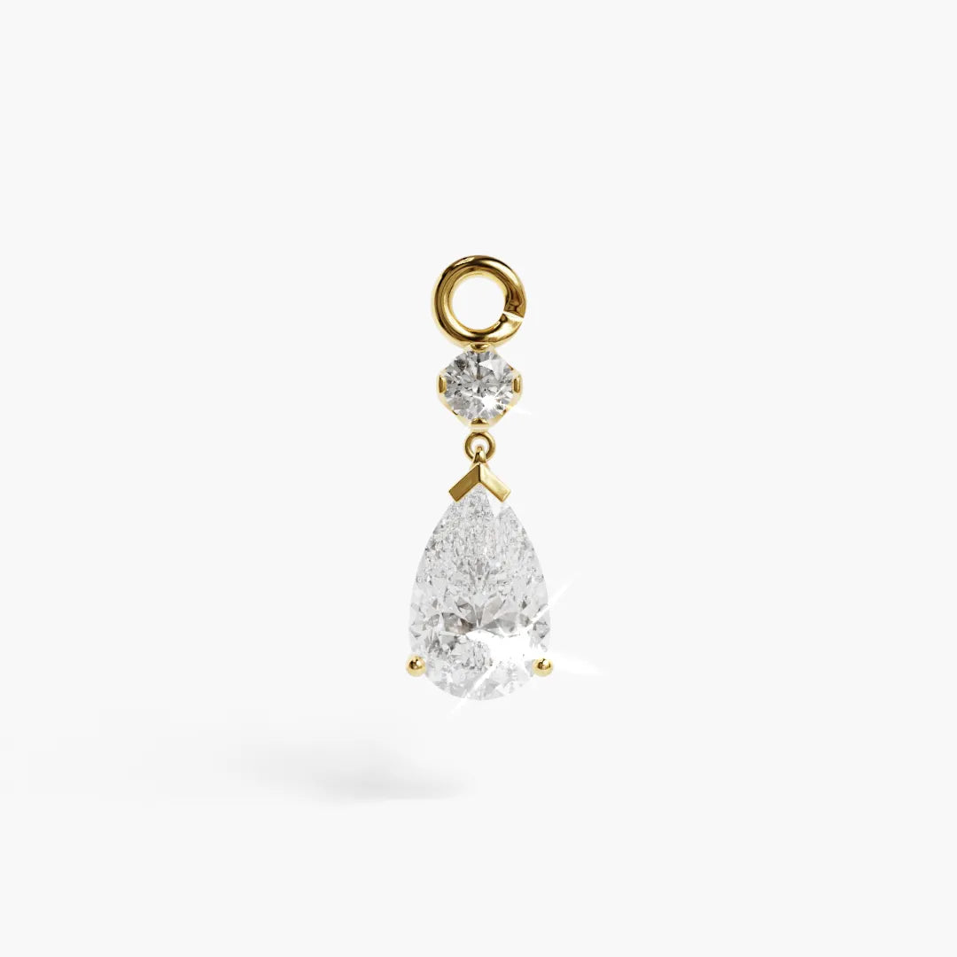 The moissanite stone has more sparkle than any other gemstone, meaning it emits more fire and brilliance. Compared to cubic zirconia that is known for its excessive light dispersion, moissanite has the same sophisticated look of a diamond. But that is not all, it is also half the weight making your charm comfortable to wear.
