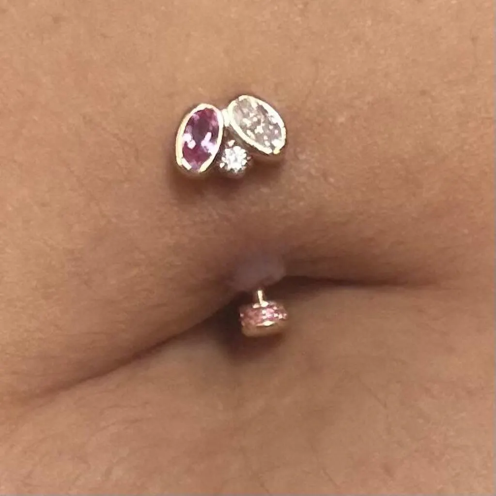 I’m so in love with this piece! It is exactly as pictured and even more perfect than I could have imagined. Working with Alyssa to customize the piece was a breeze! I’ve had my heart set on the Toi et Moi Pink Lady Sapphire design since the day I got pierced and was devastated to realize I need a 16G navel ring instead of the standard 14G. Luckily, I was able to get exactly what I needed with every detail that I wanted (16G, 14K gold, and even the pave disc upgrade!) with the customization. It was worth the wait for a custom piece! The quality and care that goes into the jewelry really shows. A small detail I was thrilled to notice was that the threading on the disc is much longer than what I’ve seen on other pieces. It’s such a small thing but a huge relief for someone that worries they’ll lose that part. I will be recommending Jolie Co to anyone and everyone I know and I’ll probably be showing my sparkly new navel ring to just about everyone for the foreseeable future because it’s just too pretty not to.