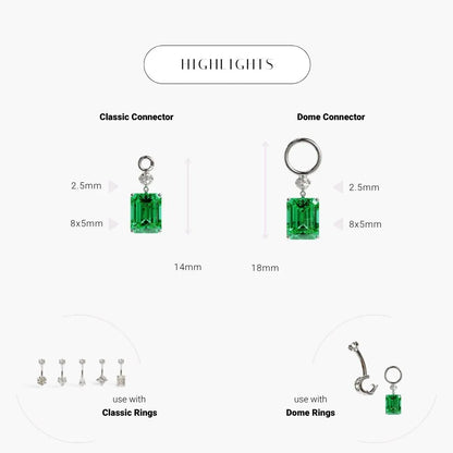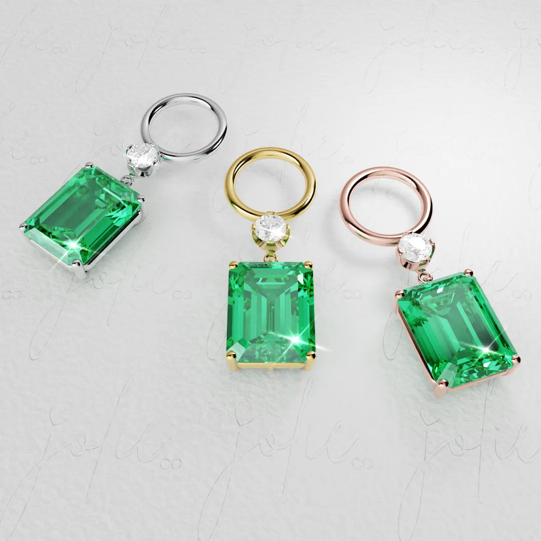 A lab-grown Emerald takes center stage, emerald-cut and stacked beneath a crisp white moissanite in our signature Orchid setting. Rich, striking, and built to stand out. Clip it on when subtle isn't part of the plan.