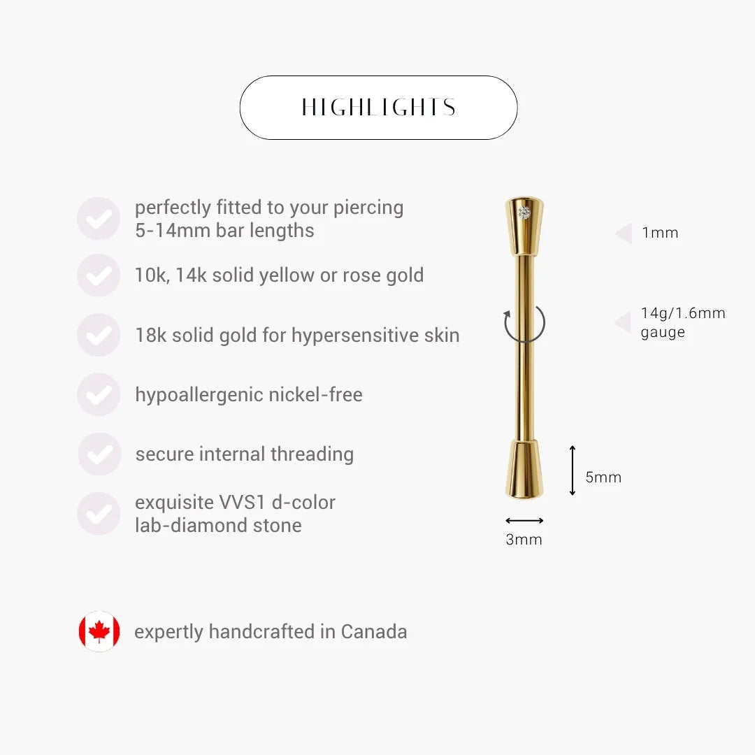 For a perfect fit, consult our Piercing Concierge®. We offer personalized bar lengths, in every whole and half size in between.