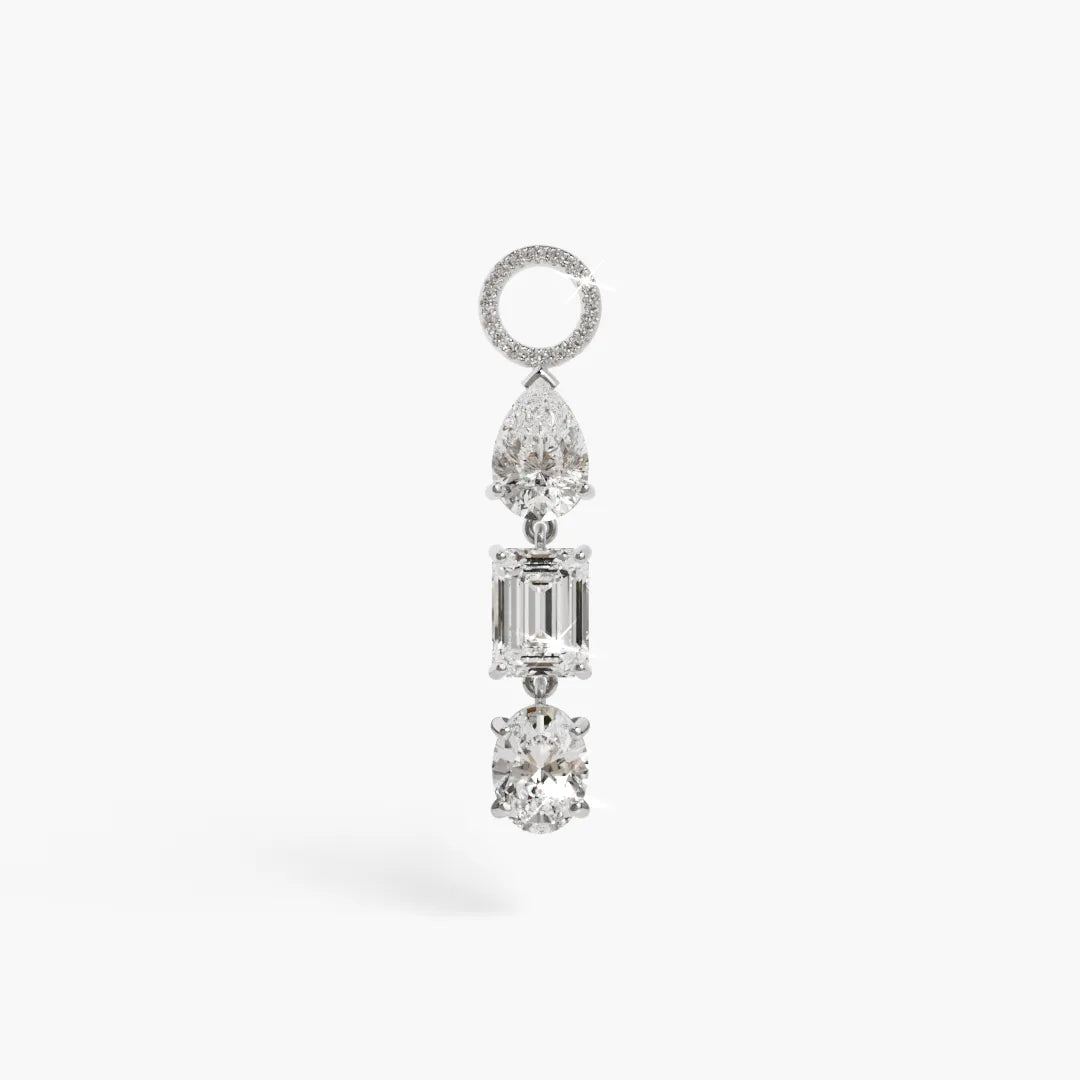 This charm is a bold addition to the our Dome Collection, making it tough for any other accessory to compete.  The stunning trio of moissanite stones, each cut in a unique shape creating a dazzling array of reflections that are nothing short of breathtaking. It become the centerpiece of your outfit; it becomes the focal point, adding an unmatched dimension of glamour.